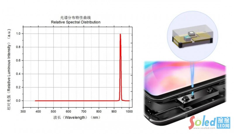 ▲國(guó)星光電1005 VCSEL器件尺寸小,光譜分布半波寬窄,發(fā)光角度集中,靈敏度更高,可應(yīng)用于智能手機(jī)人臉識(shí)別等場(chǎng)景。