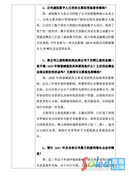 5、貴公司之前收購的亮化類公司千百輝之前的業(yè)績一直不錯(cuò),2020年商譽(yù)減值的具體原因是什么?之后的業(yè)績會(huì)呈現(xiàn)比較好的狀態(tài)嗎?文旅項(xiàng)目主要是包括哪些?