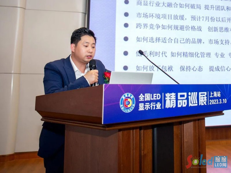 分享《攜手新征程-顯示領(lǐng)域的追夢(mèng)人》。在當(dāng)前商顯行業(yè)大融合的市場(chǎng)環(huán)境下,他為參會(huì)嘉賓分享了有關(guān)行業(yè)破局、提升團(tuán)隊(duì)、服務(wù)品牌競爭力和營銷管理等方面的見解。