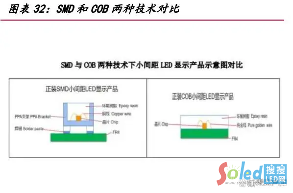 COB 相對 SMD 有兩方面優(yōu)勢:一是產(chǎn)品性能優(yōu)勢,二是成本優(yōu)勢。
