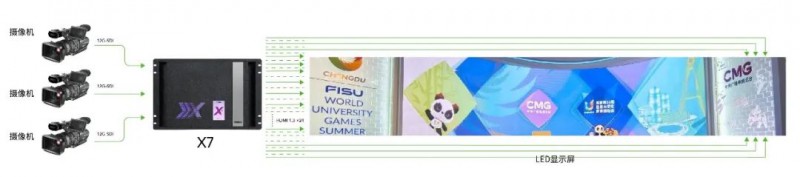 演播室使用視誠(chéng)大型視頻墻處理器X7。大運(yùn)會(huì)期間,演播室現(xiàn)場(chǎng)大屏分屏顯示,各個(gè)賽場(chǎng)的賽況都能實(shí)時(shí)看到;并向20家左右海外持權(quán)轉(zhuǎn)播商及30多家境內(nèi)轉(zhuǎn)播商提供轉(zhuǎn)播服務(wù),電視公用信號(hào)也向全球分發(fā)。