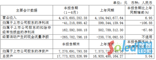 乾照光電從事半導體光電產(chǎn)品業(yè)務,主要產(chǎn)品為全色系LED外延片和芯片及砷化鎵太陽能電池外延片和芯片。上半年,乾照光電實現(xiàn)營收11.56億元,同比增長39.55%,歸母凈利潤由盈轉(zhuǎn)虧。