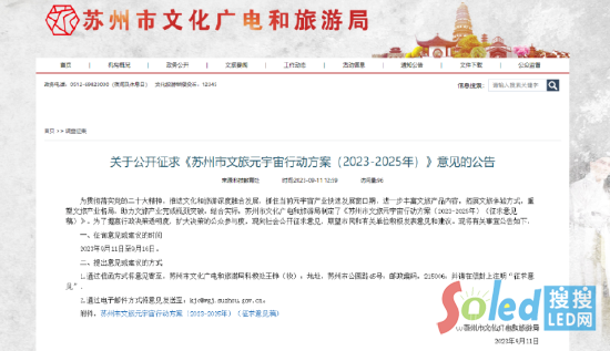 近日,蘇州市文化廣電和旅游局制定《蘇州市文旅元宇宙行動(dòng)方案(2023-2025年)(征求意見稿)》,并向社會(huì)公開征求意見。