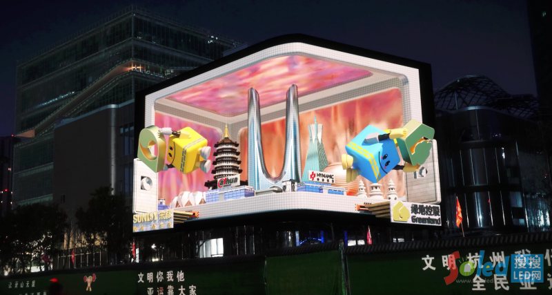 此外,諾瓦星云子品牌嗨動視覺,為杭州之門LED超級巨屏,定制制作的裸眼3D素材,成為亞運杭州街頭最靚的風景之一。