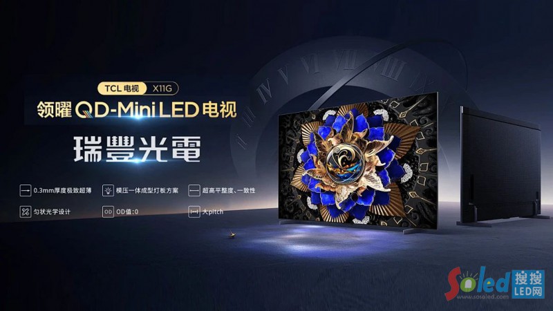 TCL X11G搭載了瑞豐光電提供的擁有5184分區(qū)的MiniLED背光模組,將MiniLED背光可精控、高亮度的特征發(fā)揮到前所未有的高度。