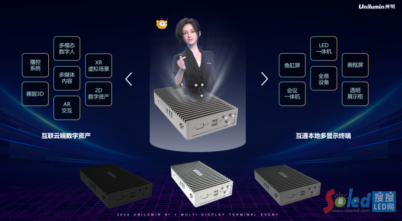 “AI光顯、贏未來(lái)”,1月30日下午14:30,2024洲明科技AI+多顯示終端發(fā)布會(huì)正式舉行。發(fā)布會(huì)發(fā)布了洲明全新技術(shù)框架下的數(shù)字虛擬人、垂直大模型、跨模態(tài)生成、空間感知、虛擬拍攝五大技術(shù),并發(fā)布最新應(yīng)用成果全尺寸全息透明柜、元宇宙生態(tài)魚(yú)缸屏、數(shù)字資產(chǎn)平臺(tái)、光顯內(nèi)容堡盒。