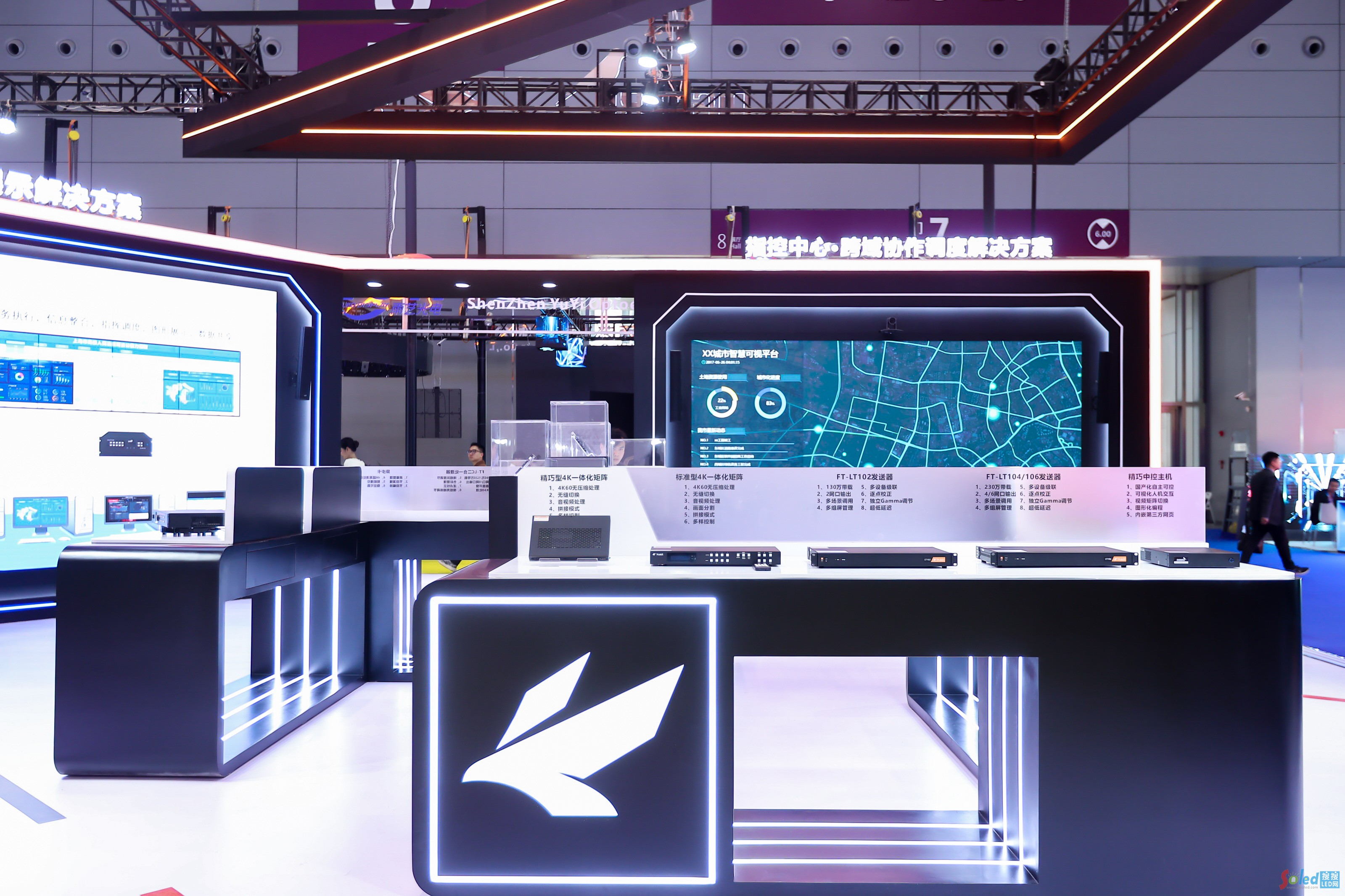 在展位的中央部分――靜態(tài)展示區(qū),小鳥科技羽控品牌呈現(xiàn)了多款旗下智能顯控系統(tǒng)產(chǎn)品,其中,UniLic LED智能顯控系統(tǒng)中的LR 系列E516 型 LED 接收卡及LC1310二合一處理器頗受關(guān)注。