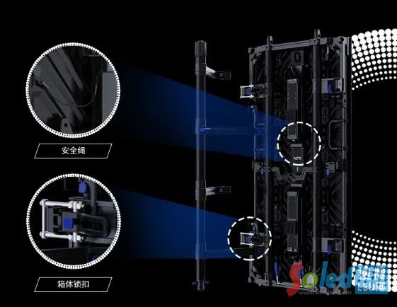 產(chǎn)品配置風(fēng)阻架,可有效抵御八級(jí)大風(fēng),加上高戶外防護(hù)等級(jí),使其能夠輕松適應(yīng)各種復(fù)雜的環(huán)境。箱體鎖扣在產(chǎn)品設(shè)計(jì)上實(shí)現(xiàn)更粗壯,可牢牢鎖定箱體之間的連接點(diǎn)。模組配備安全繩索設(shè)計(jì),使其不會(huì)輕易地掉落,為現(xiàn)場(chǎng)的舞臺(tái)演出、大型活動(dòng)保駕護(hù)航。