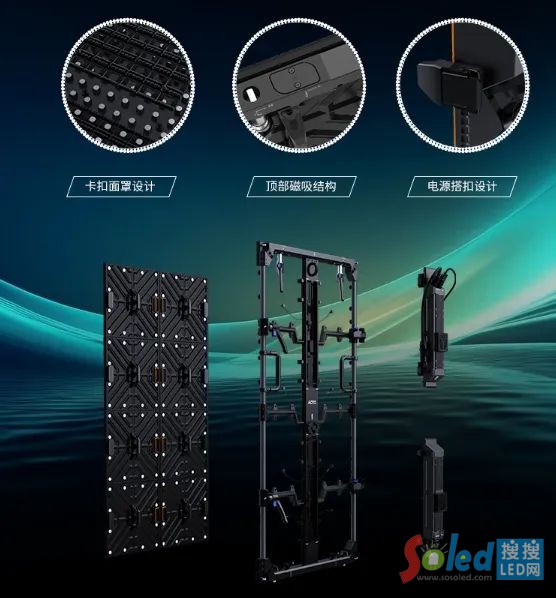 箱體連接處有磁吸結(jié)構(gòu),可輕松被激活或關(guān)閉,該結(jié)構(gòu)可實(shí)現(xiàn)更快、更精準(zhǔn)的安裝效果,大幅度減少搭建舞臺(tái)的時(shí)間成本。現(xiàn)場(chǎng)如需對(duì)產(chǎn)品進(jìn)行維護(hù),SW系列使用磁吸式模組,加上便捷式卡扣面罩設(shè)計(jì),使得整體模組維護(hù)十分迅速、便捷;背部電源采用搭扣設(shè)計(jì),可一鍵拆除,進(jìn)一步提升整體維護(hù)體驗(yàn)。