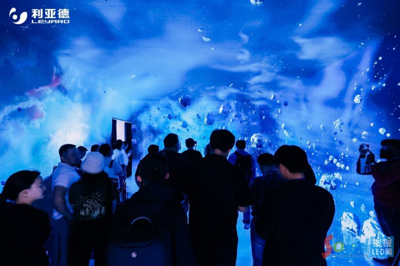利亞德打造的沉浸式藝術(shù)空間,巧妙運用五面屏幕實現(xiàn)畫面聯(lián)動,營造出一場夢幻般的沉浸式視覺盛宴。讓參展觀眾有機會身臨其境,親身體驗高清顯示的震撼魅力,一窺顯示技術(shù)締造的的奇幻世界。