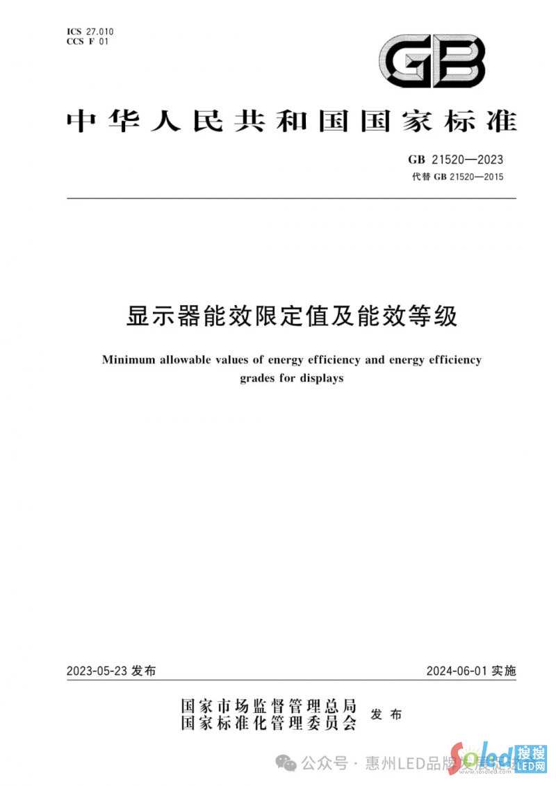 GB 21520-2023《顯示器能效限定值及能效等級(jí)》將于2024年6月1日正式實(shí)施。