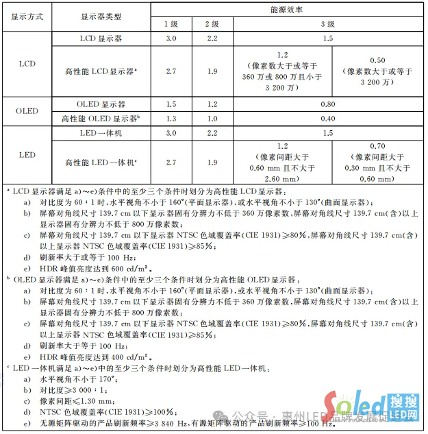 國(guó)家標(biāo)準(zhǔn)化管理委員會(huì)于2020年年底下達(dá)了《顯示器能效限定值及能效等級(jí)》國(guó)家標(biāo)準(zhǔn)修訂計(jì)劃,修訂后的GB 21350-2023《顯示器能效限定值及能效等級(jí)》已于2023年5月23日發(fā)布,將于2024年6月1日正式實(shí)施。達(dá)不到三級(jí)能效不能入市。。