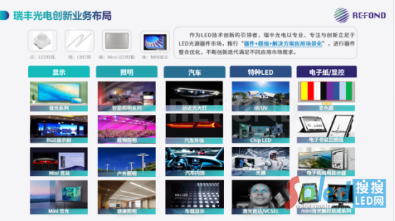 活動(dòng)現(xiàn)場(chǎng),瑞豐光電五大產(chǎn)品線重磅發(fā)布了多款創(chuàng)新產(chǎn)品方案,涵蓋了照明、車(chē)用LED、Mini背光/直顯以及觸顯等多個(gè)領(lǐng)域。
