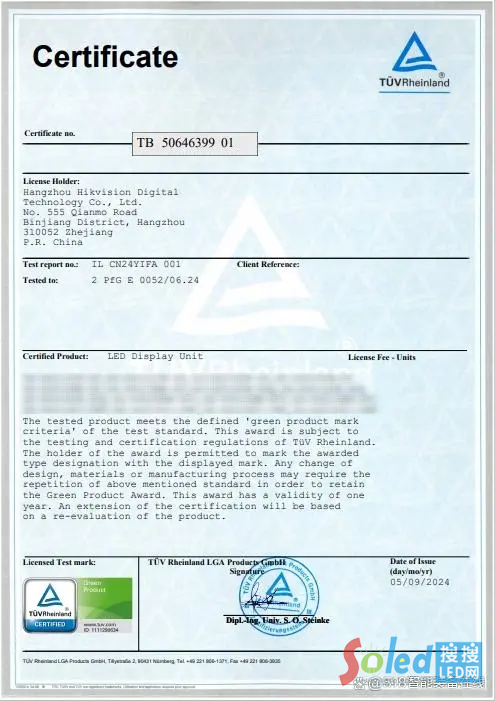 近日,海康威視16款LED顯示單元產(chǎn)品榮獲Green Product Mark認(rèn)證,是LED行業(yè)內(nèi)首次獲得認(rèn)證的產(chǎn)品,由國際權(quán)威認(rèn)證機構(gòu)德國萊茵TÜV(簡稱“TÜV萊茵”)依據(jù)2 PfG E 0052標(biāo)準(zhǔn)頒發(fā)。該組織是一個擁有150多年歷史的國際組織,作為聯(lián)合國全球契約成員及全球環(huán)境標(biāo)識網(wǎng)絡(luò)成員,其認(rèn)證在行業(yè)內(nèi)極具權(quán)威性。