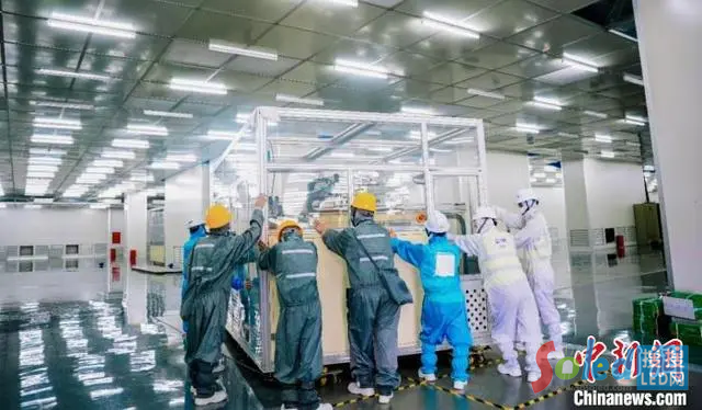 12月19日,中國大陸首條TFT基Micro-LED量產(chǎn)線在四川成都正式啟動量產(chǎn)。圖為今年9月辰顯光電工作人員將量產(chǎn)設(shè)備搬入車間!(辰顯光電 供圖)