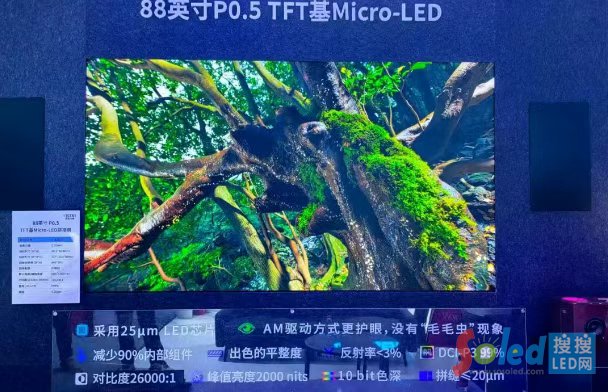 此外,辰顯光電還展出了多款前沿新品,包括全球最薄P0.7Micro-LED超薄屏、全球首款88英寸P0.5Micro LED高端家用顯示屏及全球首款P0.5 Micro-LED透明屏等創(chuàng)新產(chǎn)品。