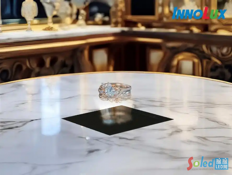 而在更廣義的 Micro LED 顯示領(lǐng)域,群創(chuàng)還帶來了“Micro LED 浮空珠寶盒”。這一創(chuàng)意產(chǎn)品浮空影像亮度可達(dá) 1500 尼特,支持非接觸式手勢(shì)感應(yīng)技術(shù),亦可即時(shí)識(shí)別拿取、旋轉(zhuǎn)虛擬對(duì)象等手勢(shì)動(dòng)作。