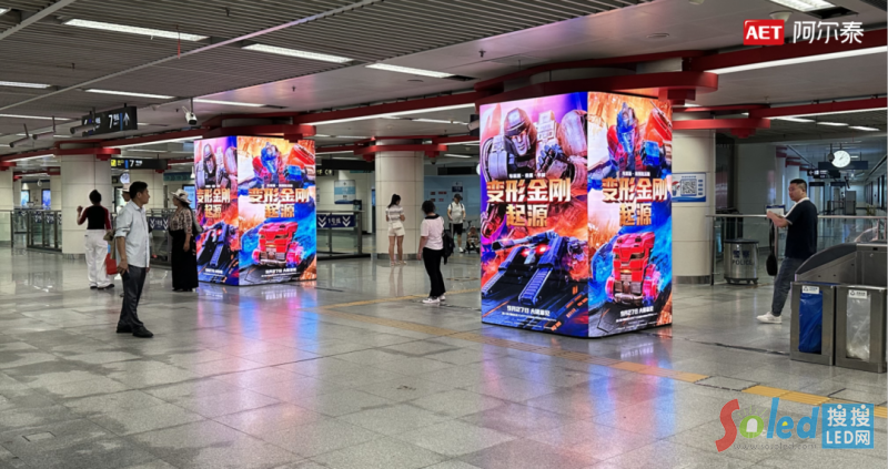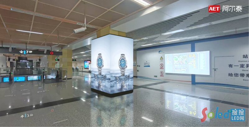 作為成都地鐵LED裸眼3D包柱項(xiàng)目承建方,AET阿爾泰成功將本項(xiàng)目打造成強(qiáng)視覺、強(qiáng)沉浸、強(qiáng)互動(dòng)的創(chuàng)意視覺標(biāo)桿,以高品質(zhì)軟模組P1.8帶箱體產(chǎn)品,打造出5.6*3.52m*4面/2.56*3.84m*4面/2.56*1.92m*4面等多個(gè)規(guī)格的裸眼3D包柱,集“顏值”與“功能”于一體,畫面細(xì)膩柔和、視覺效果極佳。