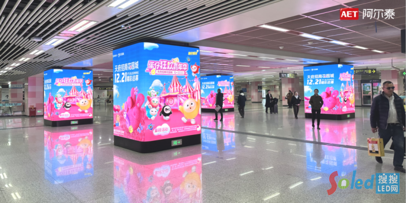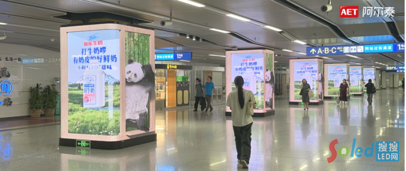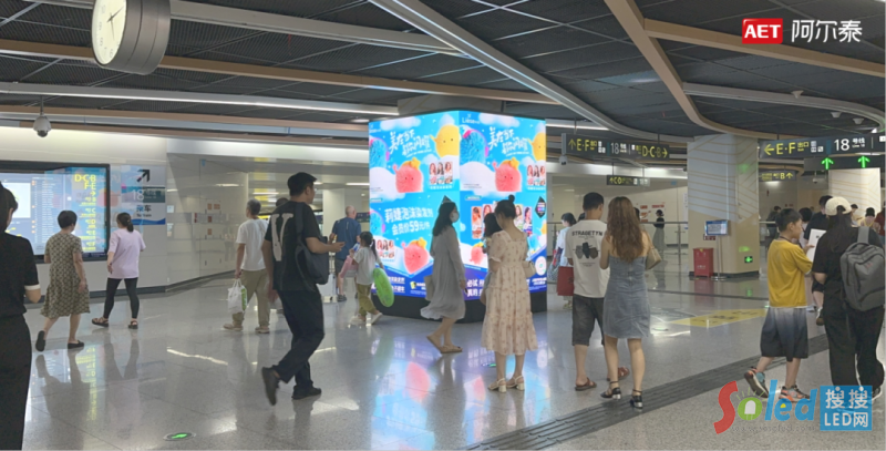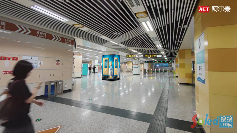 AET阿爾泰為成都地鐵打造LED裸眼3D包柱項(xiàng)目,利用雙屏多屏聯(lián)動(dòng)技術(shù)使平面圖像“躍出屏幕”與乘客互動(dòng),將功能性結(jié)構(gòu)升級(jí)為網(wǎng)紅打卡點(diǎn),給人以撲面而來的科技感和舒適感,讓日常的交通節(jié)點(diǎn),生長為滋養(yǎng)人民美好精神的沉浸式載體。
