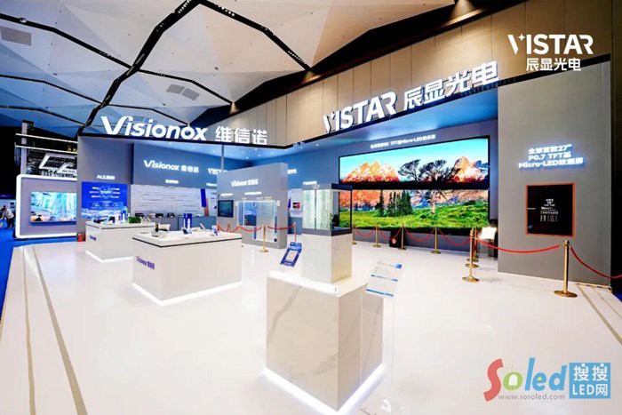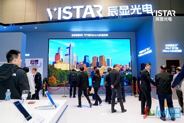 其中,辰顯光電展出的全球首款8K TFT基 Micro-LED顯示屏,憑借270英寸超大尺寸與極致畫質(zhì),成為全場焦點,代表了當(dāng)前全球顯示技術(shù)的最高水平。其像素間距僅0.7毫米,8K 超高清分辨率可呈現(xiàn)超3300萬個像素點的細(xì)膩細(xì)節(jié),畫面細(xì)膩通透。產(chǎn)品采用先進(jìn)的AM驅(qū)動技術(shù),實現(xiàn)每個像素獨立控制,畫面更加均勻穩(wěn)定,徹底解決傳統(tǒng)LED大屏亮暗不一的問題。得益于 Micro-LED 自發(fā)光特性,屏幕可呈現(xiàn)純粹的黑色、極高的對比度和自然鮮艷的色彩,帶來如臨其境的觀影體驗?蓮V泛應(yīng)用于專業(yè)影院、高端私人影院、指揮調(diào)度中心、商業(yè)展示等高端場景。