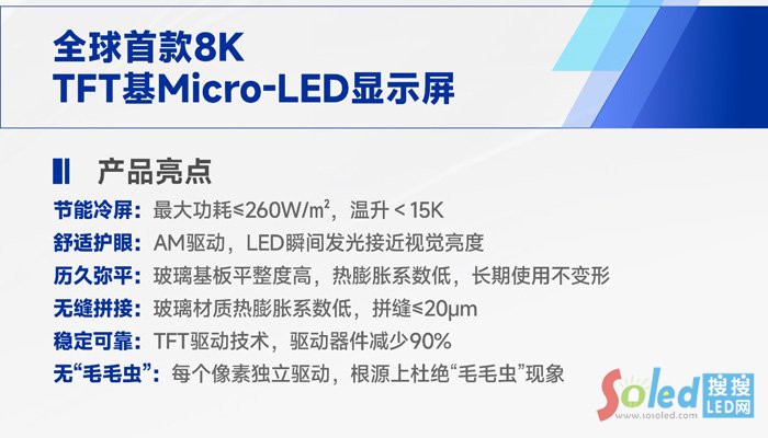 全球首款13.55英寸 P0.7 TFT基Micro-LED拼接模組:模塊化大尺寸設(shè)計,平整度高、拼縫小,為超高清商顯提供可規(guī);墓こ袒桨。