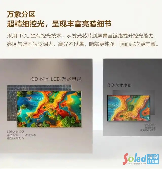 區(qū)別于其他產(chǎn)品追求極致輕薄而犧牲畫質,A400 Pro并沒有在設計與畫質之間妥協(xié),而是通過核心技術體系,讓藝術形態(tài)與優(yōu)異畫質同步呈現(xiàn)。作為QD-Mini LED的開創(chuàng)者,TCL將Mini LED高分區(qū)精準控光與量子點色彩增強技術融合,讓畫面既細膩真實,又色彩飽滿,完美兼顧視覺美感與觀影體驗。