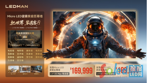 [2026年4月2日,深圳]  今日,Micro LED顯示領(lǐng)域的領(lǐng)軍企業(yè)雷曼光電正式發(fā)布旗下家庭巨幕新品——Micro LED家庭巨幕墻LV 135 MAX悅享版和LV163 MAX悅享版。同步公布兩款型號的官方定價:LV 135 MAX悅享版售價169999元,LV163 MAX悅享版售價189999元。