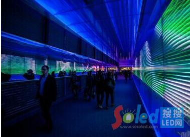 這是由法國設(shè)計(jì)師法國miguelchevalier和作曲家michelredolfi在巴黎設(shè)計(jì)的音樂LED感官隧道。