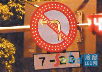 因LED燈直接附著在標志上,像“禁止左轉”與“分道標志”原本的黑箭頭就貼上黃色LED燈,白天看還好,但晚上標志內的指示箭頭,就會全部變成黃色,違反設置規(guī)定。