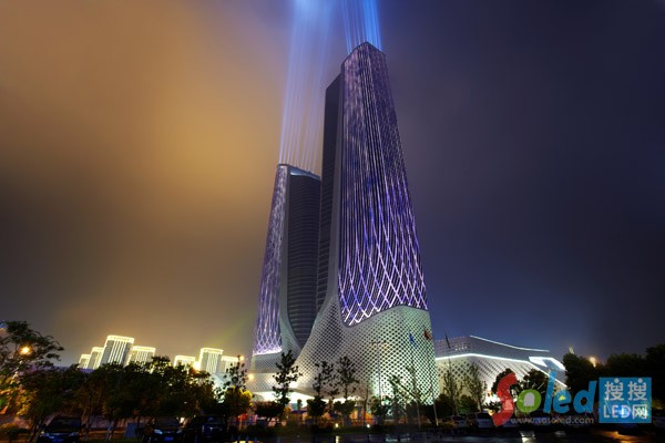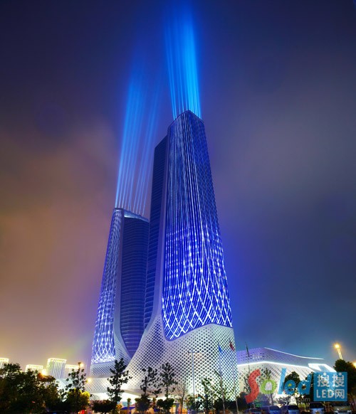 事實(shí)上,復(fù)雜而精巧的建筑外形,已經(jīng)決定了青奧雙塔的景觀照明會(huì)是一件非常有挑戰(zhàn)的項(xiàng)目。怎樣合理地為一個(gè)復(fù)雜、甚至有些“矛盾”的建筑表現(xiàn)出最恰當(dāng)?shù)臍赓|(zhì)?飛利浦照明與美國(guó)BPI照明設(shè)計(jì)公司一起,以創(chuàng)意和文化為考量,以光為載體,以南京夜空為背景,以強(qiáng)大的技術(shù)和照明系統(tǒng)作支撐,共同為觀賞者呈現(xiàn)出了一場(chǎng)場(chǎng)充滿設(shè)計(jì)感的視覺互動(dòng)盛宴。