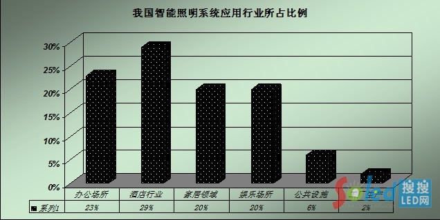 我國智能照明系統(tǒng)應用行業(yè)所占比例