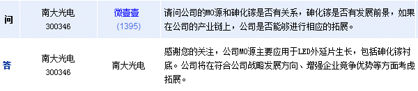 南大光電主要從事光電新材料MO源的研發(fā)、生產(chǎn)和銷(xiāo)售。