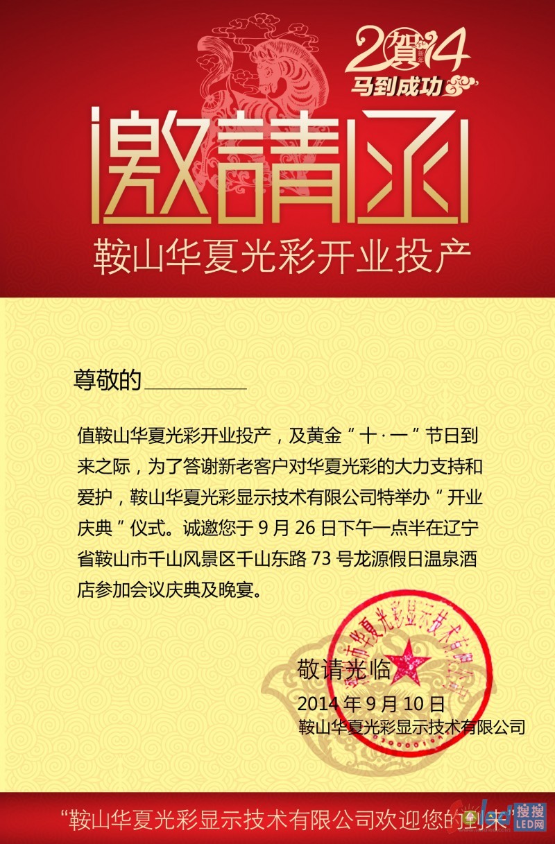 2014531日,鞍山華夏光彩顯示技術(shù)有限公司正式成立,這標志著深圳華夏光彩在北方地區(qū)立足生根,并對北方市場的產(chǎn)品和服務(wù)有了更加貼近、便利性和人性化的保障。鞍山華夏光彩是華夏光彩在北方地區(qū)的延伸和拓展,同時也是渠道建設(shè)的進一步深化。