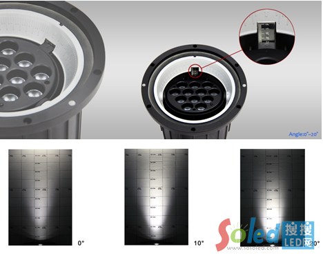 JRD5搖明地埋燈可以實(shí)現(xiàn)0到20°的角度調(diào)節(jié),同時(shí)采用偏轉(zhuǎn)眩光控制線和垂直眩光控制線角度標(biāo)尺設(shè)計(jì),使得角度調(diào)節(jié)更精確,這一切都幫助更為有效地防眩光。