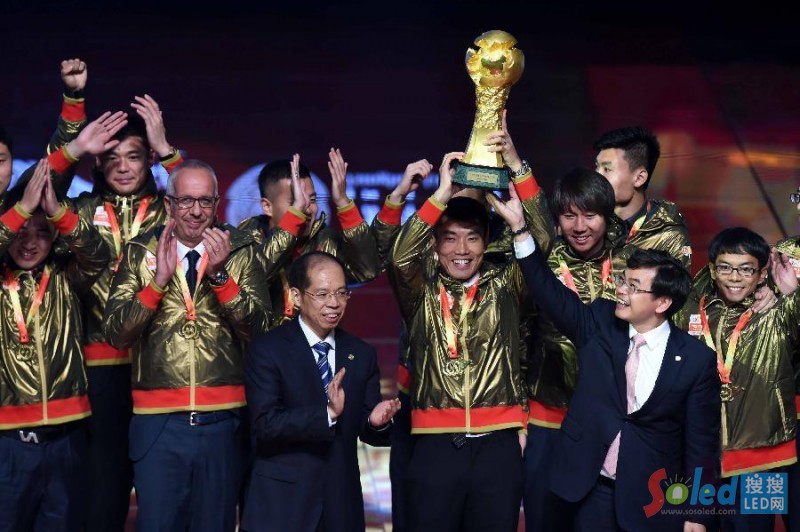 圖:雷曼光電榮獲“2014中超足球聯(lián)賽最佳合作伙伴獎(jiǎng)”