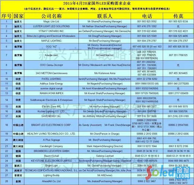 附:海外28家LED采購商詳細聯(lián)系方式