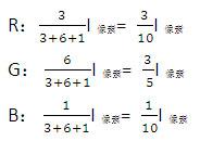 因為在顯示屏白平衡時,RLED、GLED和BLED的強度比約為3:6:1,因此對于亮度為L屏(單位cd/m2)的顯示屏在白屏的情況下,每個像素點的光強度I像素=L屏(cd/m2)÷點數(shù)/m2÷η(η為光的系統(tǒng)損耗度,一般可取0.9左右);則R、G、B所占的光強值分別為: