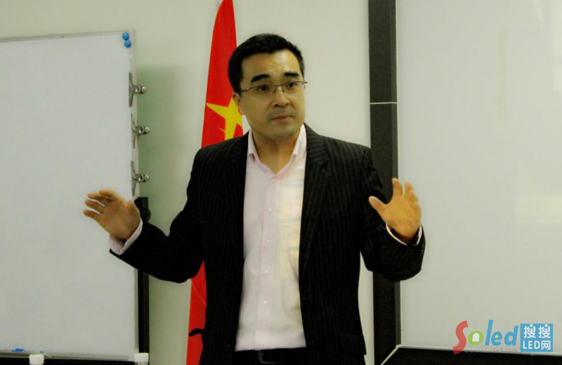 之后, 晶科電子(廣州)有限公司副總裁宋東向到場的嘉賓們表示熱烈的歡迎,并介紹了晶科電子的地理位置的優(yōu)越性——南沙自由貿(mào)易區(qū),5年專注COB倒裝焊領(lǐng)域,以及對(duì)LED照明未來的發(fā)展進(jìn)行推測,球泡燈、日光燈管將被歷史淘汰,也對(duì)晶科電子在COB領(lǐng)域向前發(fā)展作了詳細(xì)介紹,如:承接的項(xiàng)目——投影機(jī)、汽車前大燈照明,同時(shí)也在向電視機(jī)背光源、手機(jī)閃光燈領(lǐng)域取得一定的成效,而這一切都取決于專注倒裝COB應(yīng)用技術(shù),他希望能夠?qū)a(chǎn)品做到極致化,并且在此基礎(chǔ)上不斷延伸,找準(zhǔn)自己的產(chǎn)品定位,并且對(duì)美術(shù)館、博物館的照明市場給予很高期望,最后他發(fā)表了自己的觀點(diǎn):做高檔照明產(chǎn)品才有發(fā)展前途,否則將會(huì)在市場的洪流中淘汰。