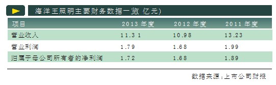 但作為核心產(chǎn)品,固定照明設(shè)備的產(chǎn)能利用率卻逐年下滑。2011年到2013年,固定照明設(shè)備的產(chǎn)能利用率分別為96.19%、68.7%和66.42%。