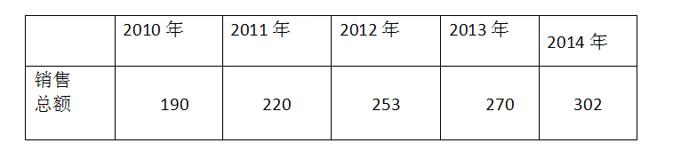 表1 2010年-2014年全國(guó)LED顯示企業(yè)銷售額(億元)