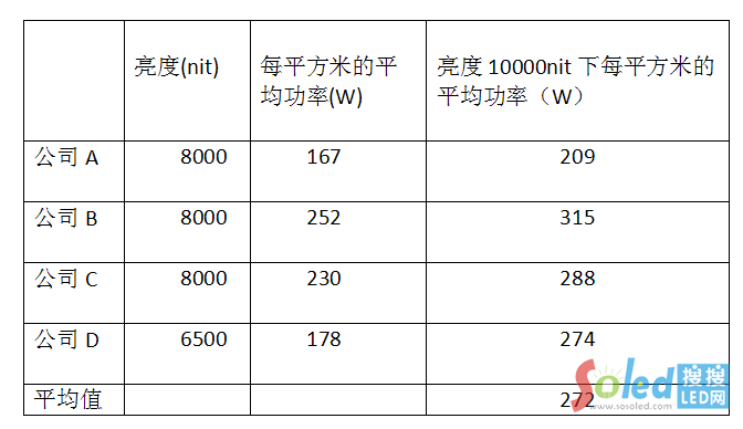 從表3可以看出,P16戶外LED顯示屏的平均功率為272W/m²。