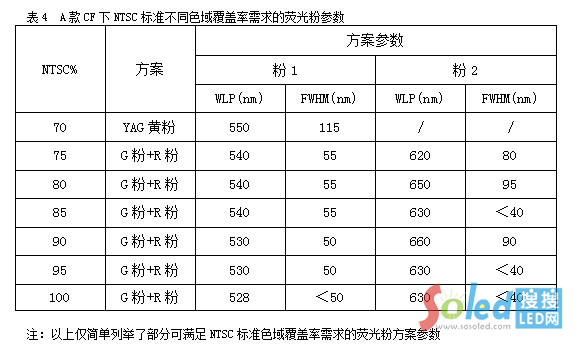 3.3不同色域覆蓋率需求與熒光粉方案的案例說明