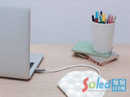 這款LED燈具由24塊柔性的LED材料拼接而成,內置可以運行2.5小時的鋰離子電池,并能通過USB接口充電。通過燈具內部的加速器,可以實現(xiàn)開關,閃爍,強度,脈沖等相關功能的操作,從而讓使用者更容易定位找到深藏在包包里的車鑰匙或其他東西。不僅如此,它還能用于一般的閱讀照明。