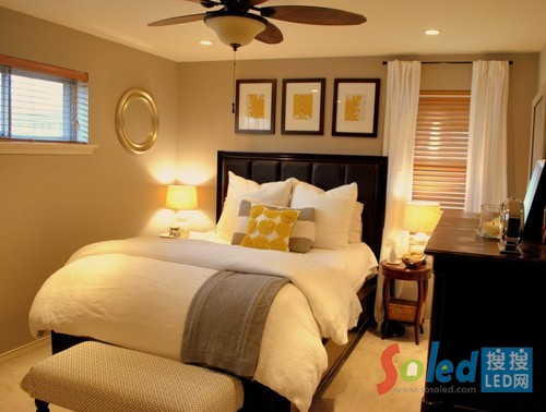 在安排燈具時,主照明一般都采用直接照射的方式,對于室內(nèi)較小的環(huán)境可以將光源照射天花板進行漫反射,獲得更柔和的照明。