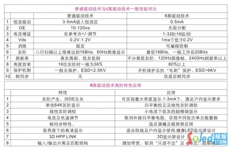 圖為普通驅(qū)動(dòng)技術(shù)與六高驅(qū)動(dòng)技術(shù)特點(diǎn)對(duì)比