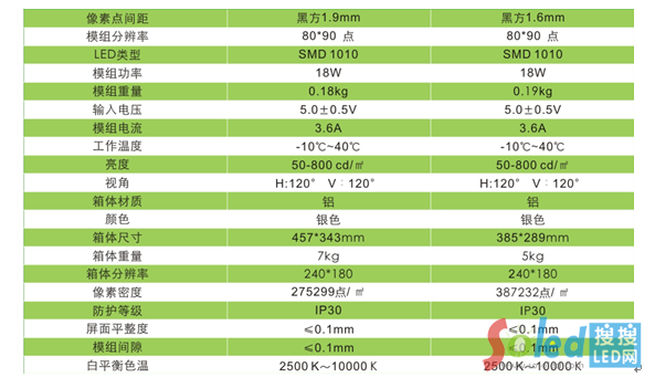 會議顯示用黑金剛P2.5、P1.9產(chǎn)品參數(shù)